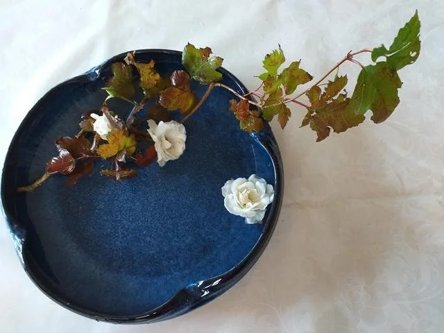 The theme of this workshop is water. The elements have a role in ikebana and water as well as air (space) is very important. Given that flowers are still unavailable, it will be only necessary to resource a few materials to create an arrangement which should give you pleasure.