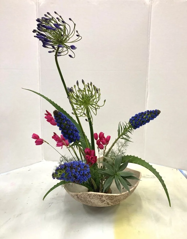 For this workshop please cut your own materials, branches, leaves and/or flowers and observe how they were growing. It is then easy to make an ikebana arrangement, whether upright, slanting, or horizontal.