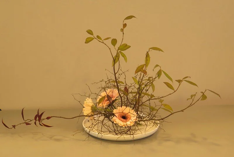 Masako led a workshop on how to arrange flowers and branches in a suiban without a kenzan