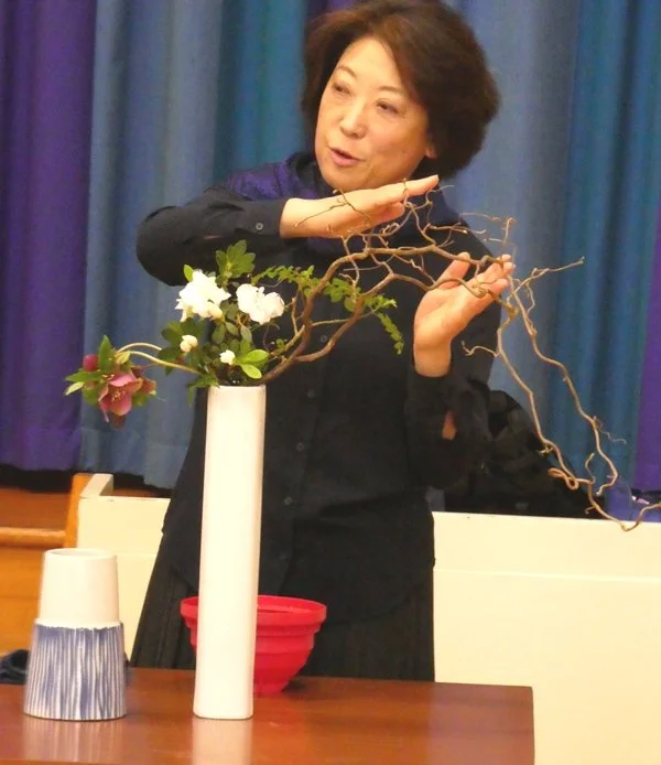 “Good ikebana has movement within it. Plants don't move, but they should look as if they're moving. In Sogetsu ikebana, a feeling of movement comes from the arrangement. Green colour gives the impression of movement because when we look at a plant, we react instantly to its green mass.